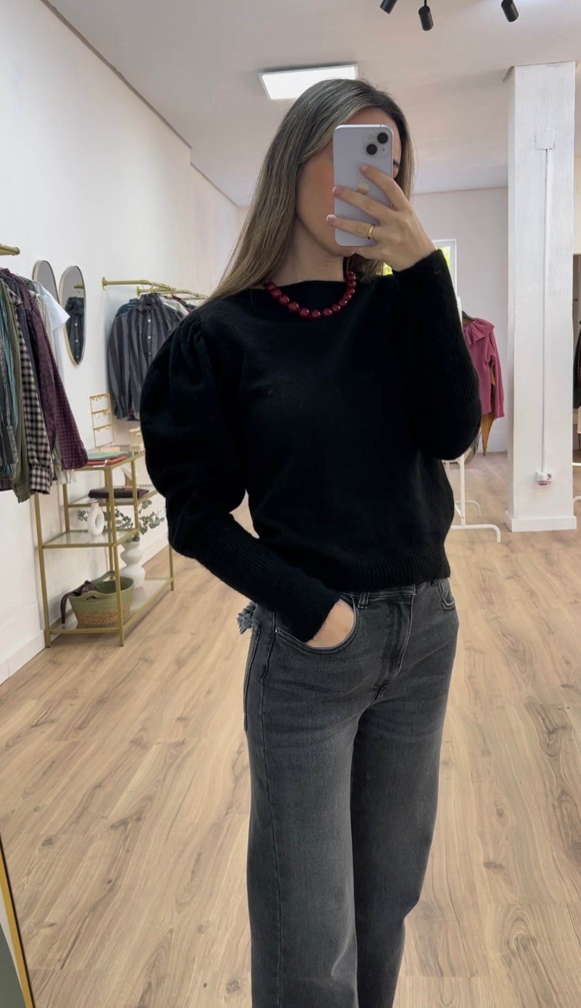 Jersey negro manga abullonada