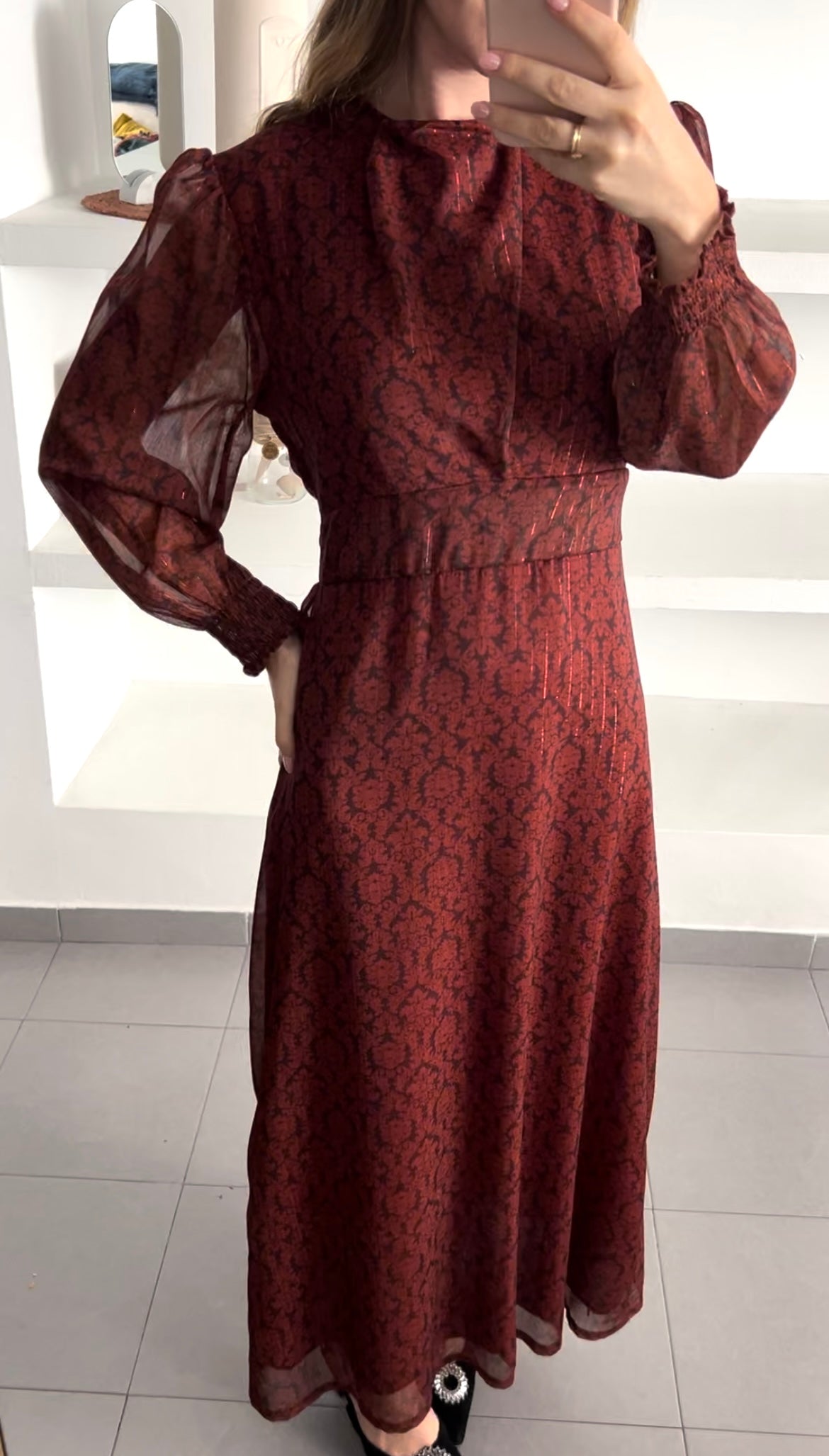Vestido estampado color teja